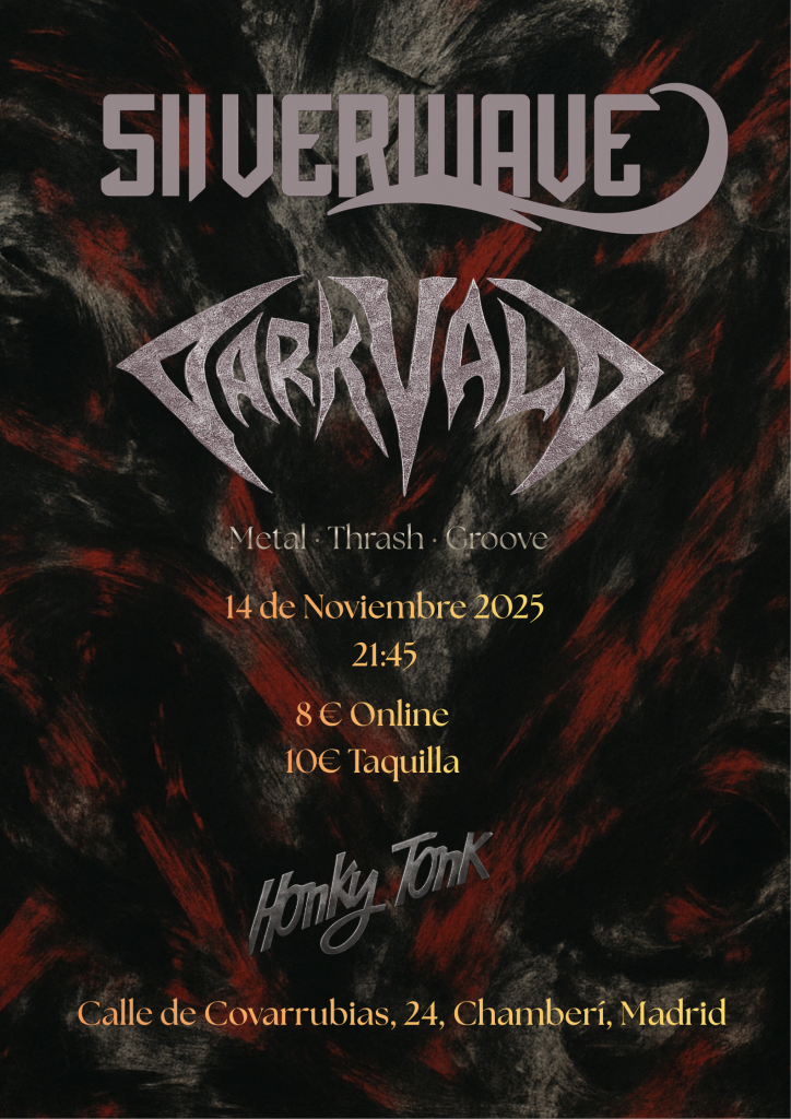 Viernes, 14 de noviembre DARKVALD & SILVERWAVE 21:30h ENTRADA ANTICIPADA 8€ TAQUILLA 10€ Redes socialesVenta de entradas anticipadas