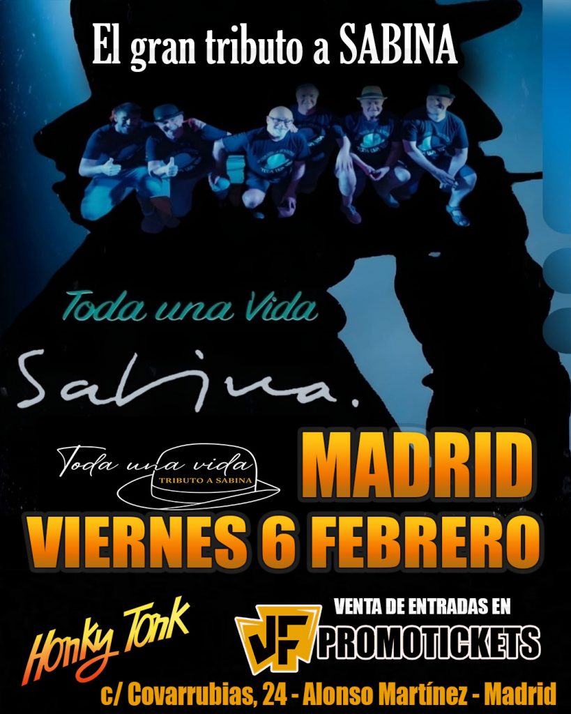 Tributo a Sabina Madrid, Toda una Vida, Concierto Sabina Madrid 2026, Música en directo Madrid, Honky Tonk conciertos, Entradas conciertos Madrid, Tributos España 2026, Conciertos febrero Madrid.