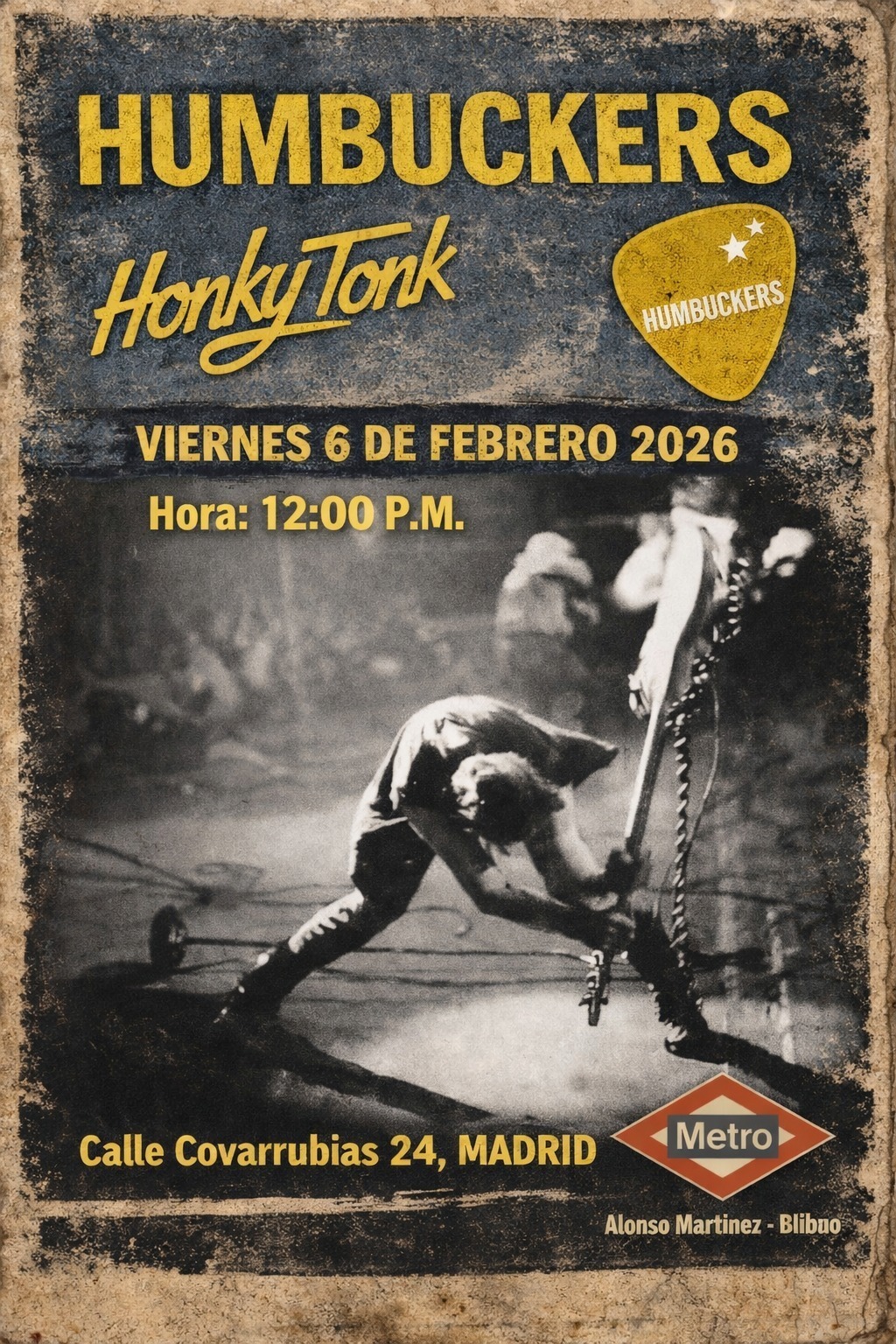 Humbuckers es un invento musical para hacer disfrutar a la gente. Somos una banda con más de 8 años de solera en la escena de clubs de Madrid, tales como La Sal, Ritmo y Compás, Orange Café o Ancora. Formada por Aurora Vázquez a la voz, Daniel Folgado al bajo, Joaquín Torres a la batería, Miguel Ángel Higueruela a la guitarra, Jorge Sánchez a la guitarra y Eduardo Sala a los teclados. Tratamos de recrear los mejores temas del rock años 70-80 tanto del rock nacional como internacional, intentando enganchar tanto a los que conocen nuestra música como a los más profanos. Los conciertos son verdaderas descargas de adrenalina y pasión en donde se crea una comunión directa con el público.