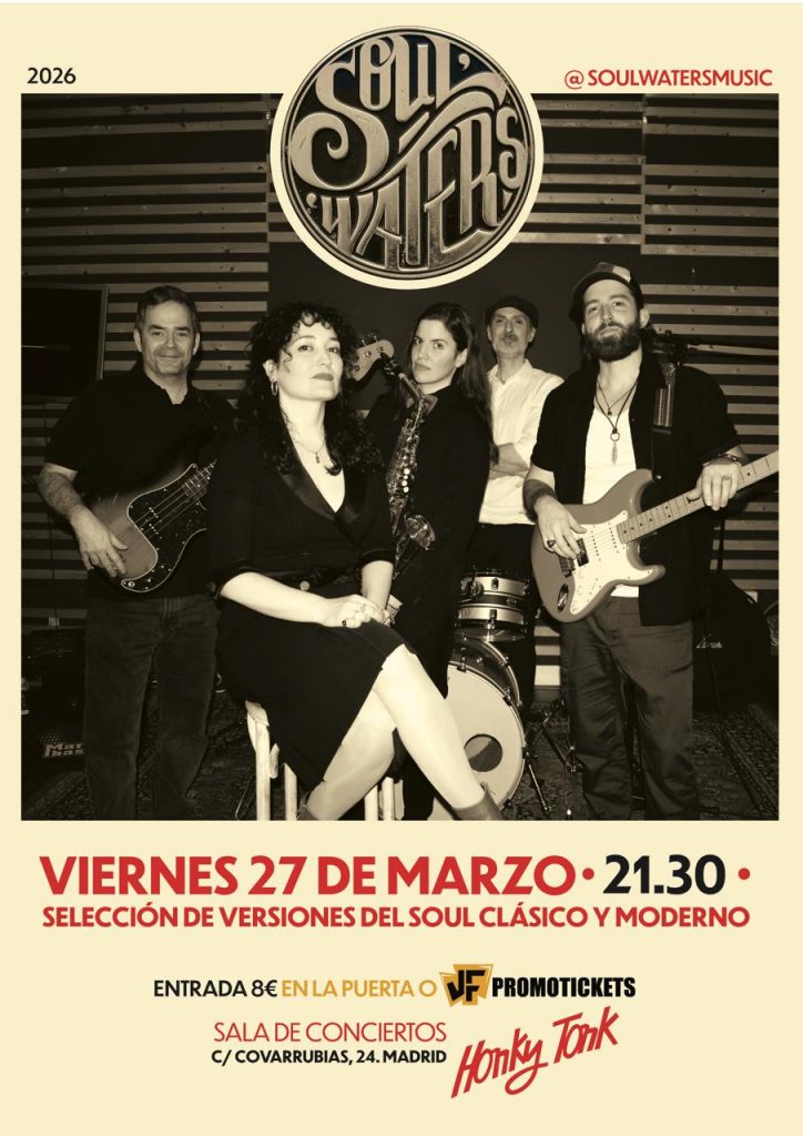 Formada en Madrid en 2024, la banda SoulWaters surge del encuentro entre músicos con una pasión común por el soul, la emoción y la energía del directo. Los músicos han ido construyendo su identidad musical actuando en distintos eventos y escenarios privados y públicos, desarrollando un sonido sólido y una conexión especial con el público.