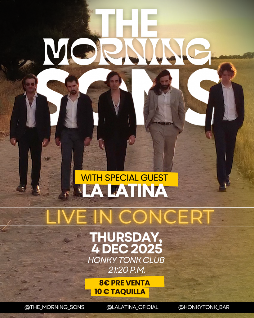 Jueves, 04 de diciembre THE MORNING SONS & LA LATINA 21:30h ENTRADA ANTICIPADA 8€ TAQUILLA 10€ Venta de entradas anticipadas