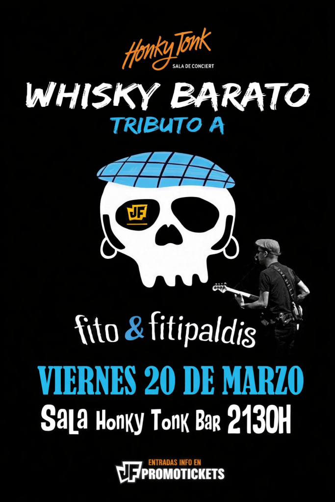 Tras el llenazo de los eventos anteriores, el próximo sábado 25 de octubre de 2025, llega a la sala Honkytonk de Madrid el mejor tributo estatal a Fito & Fitipaldis con Whisky Barato. Prepárate para una gran noche de rock donde disfrutaremos del más puro rock ‘n’ roll repasando los grandes éxitos de la banda liderada por el ex-Platero y tú, Fito Cabrales. Si eres amante de esta banda, no te puedes perder este fiel homenaje.